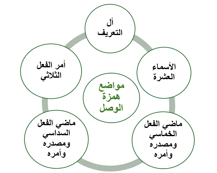توجد همزة الوصل في خمسة مواضع من الكلام العربي؛ وذلك على النحو الآتي: